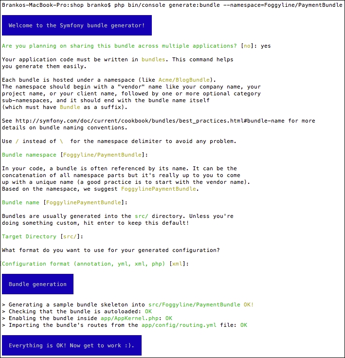 php bin/console generate:bundle --namespace=Foggyline/PaymentBundle