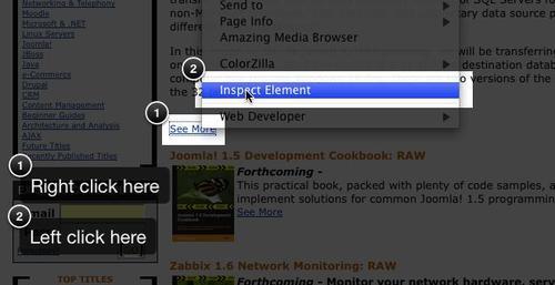 The first and most important feature of Firebug is the Inspect Element feature. This feature can be accessed by right-clicking on any HTML element on the page and selecting Inspect Element from the context menu.