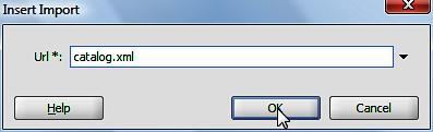 In the Insert Import window specify the Url for the XML document as catalog.xml and click on OK.