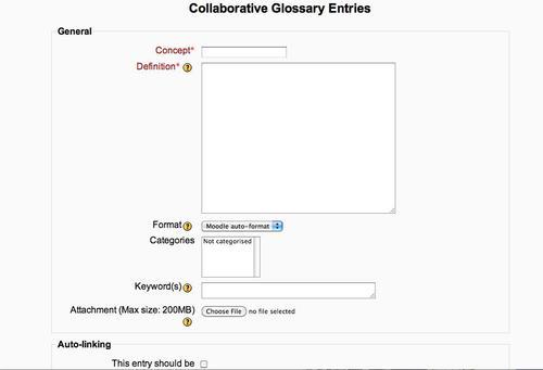 A practical and easy-to-understand way of engaging your students, and encouraging them to start developing schema in an interactive way, is to create a glossary. In Moodle, the glossary is an activity. To add a glossary, follow these steps: