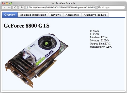 In this example, let's suppose that we're making a website for a computer hardware retailer; on pages that display items for sale we'll use a tabbed interface to provide extended product information displayed on a series of tabs.