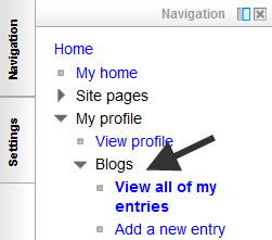 Last year when Emma studied on Moodle 1.9, if she wanted to make a blog entry she would click on her name to access her profile and she'd see a blog tab like the one shown in following screenshot: