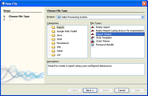 Enter Sales.jrxml as the File Name, and type in Reports as the Folder: