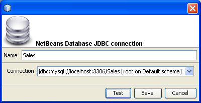 Enter Sales for Name and select jdbc:mysql://localhost:3306/Sales from the Connection list, as shown in the following screenshot: