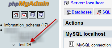 Once you click on your database if it contains tables and rows, you will see a number next to it and all the tables on the left side of your screen.