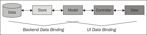 Store: The store component is responsible for fetching the data from its source and for including it into a data model of an application. Framework provides a JSON store, which creates the data into a JSON format, which we will go through in detail in the Data store section in this chapter. Most of these concepts are defined in two packages...