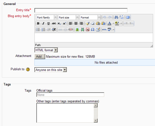 The phenomenon that is blogging has had an impact on education in a variety of ways, mainly through its creative use by teachers to give an audience to their own and students' work. It is very easy for a student to create and maintain a blog within Moodle. Blog entries about books read, visits undertaken, and podcasts created with a historical theme are striking evidence of a capacity for independent learning.
