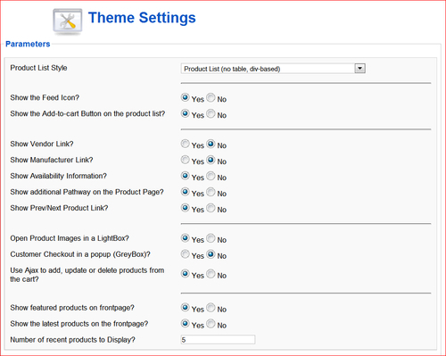 How does VirtueMart know what settings are available for the theme and is it a drop-down or textbox? All the secrets lie in the file theme.xml. As the file extension suggests...