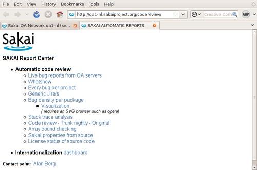 A second line of defense is the automatic scrutiny of the main code base two to three times a day by the University of Amsterdam's QA server. The Amsterdam server automatically downloads the most current source and builds as shown: