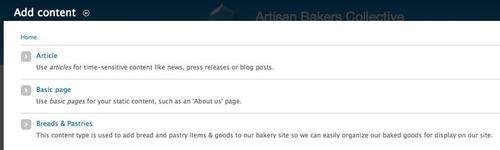Now that we have built our content type, we can begin to use this type to add the specific Bread & Pastry item nodes to the site.