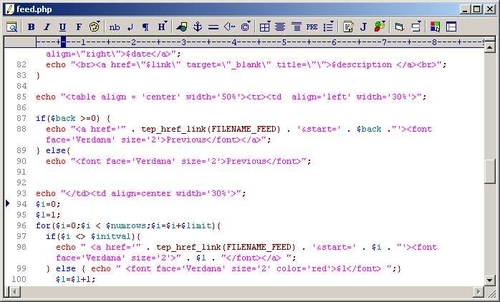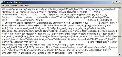 echo " <a href=’" . tep_href_link(FILENAME_FEED) . ‘&start=’ . $i . "’><font face=’Verdana’ size=’2’>" . $l . "</font></a> ";