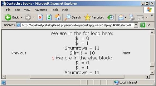 Generally, you don’t need to be quite as verbose as the above statements. If you have a fairly good idea of what is going on, you simply need to echo one or two values to the screen to find out what is happening. Looking at the results of the above modifications, we see that for the first page our results are: