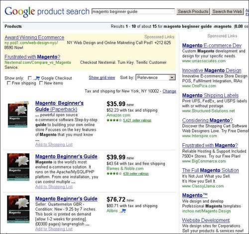 Notice the results for Google product search are a mix of sponsored links (paid advertisements), and products submitted to Google: